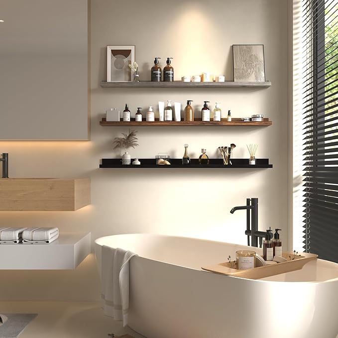 - Practical design: These wall-mounted ledge shelves are both stylish and sturdy, made of high-quality medium-density fiberboard. They features a classic U-shaped design that prevents your items from slipping off due to accidental touches, making your items safe and reliable.