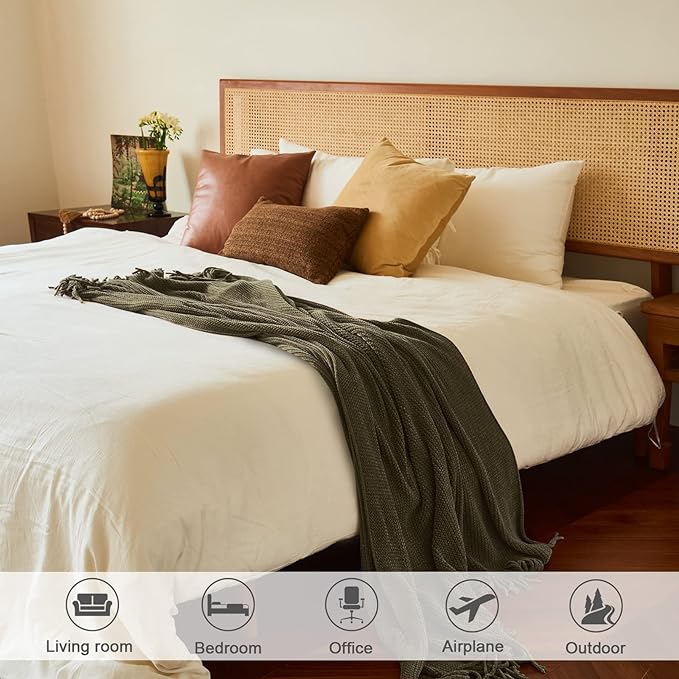 lifein Throw Blanket for Couch, Soft Green Boho Decor Bed Throw,Cozy Knitted Chenille Farmhouse Lightweight Throw for Spring(Olive Green,60 * 80")