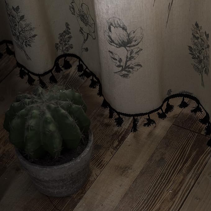 - 【Bohemian Chic Style】The macrame boho curtain panel is printed with grey florals including bees patterns, both sides and bottom sewed with handmade tassels. It add farmhouse stylish and decorative elements to your rooms.