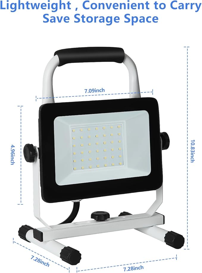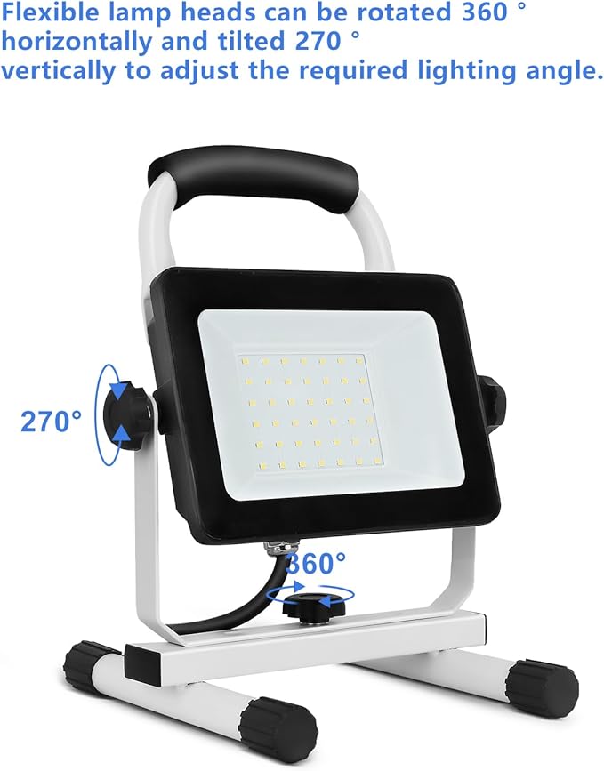 UFOND 4000 Lumen LED Work Light with Stand,40W Waterproof Portable Flood Lights, Worklight Brightness Angle Adjustable, with Switch Power Cord, Suitable for Construction Sites, Garage Workshop