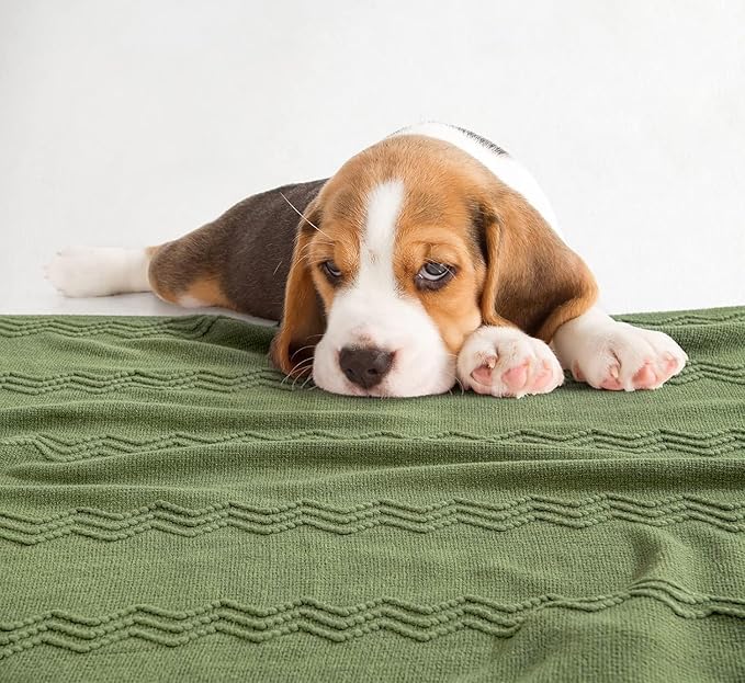 MIULEE Moss Green Knitted Throw Blanket for Couch Textured Knit Blanket with Tassels Cozy Woven Bed Blanket for Sofa Bed Chair Wave Pattern Spring Home Decor for All Seasons 50"x60"