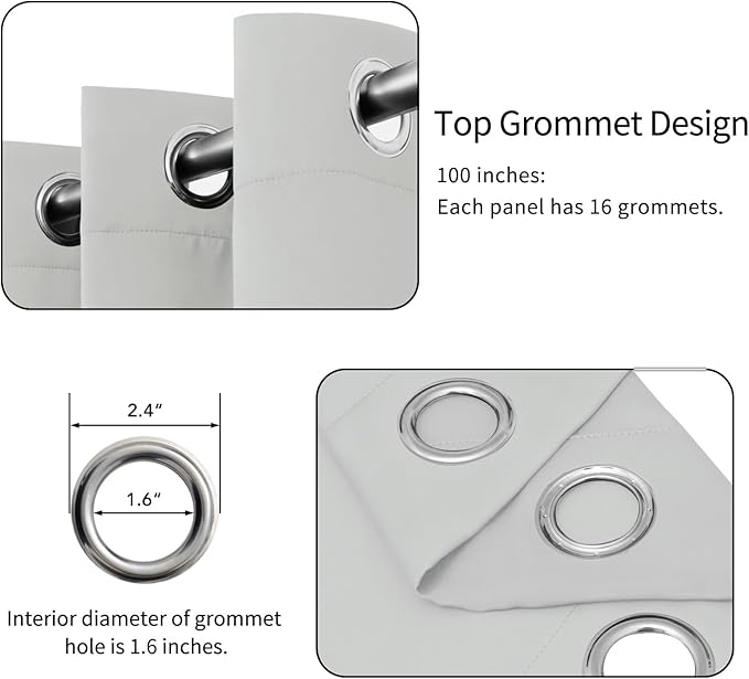 - Easy to Install: Each curtain panel has 12 silver metal grommets on top. Each grommet inner diameter is 1.6 inch, fits easily with standard curtain rods. Easy to hang, and slide smoothly. Perfect for office, bedroom, living room.