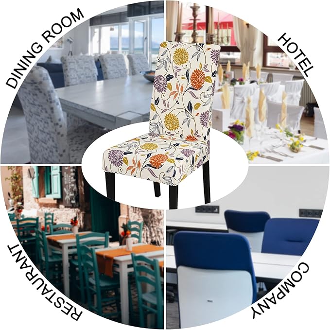 JQinHome Pattern Chair Covers for Dining Room Set of 6, High Stretch Removable Washable Parsons Chair Slipcover for Home Party Hotel Wedding Ceremony (Flower,6PCS)