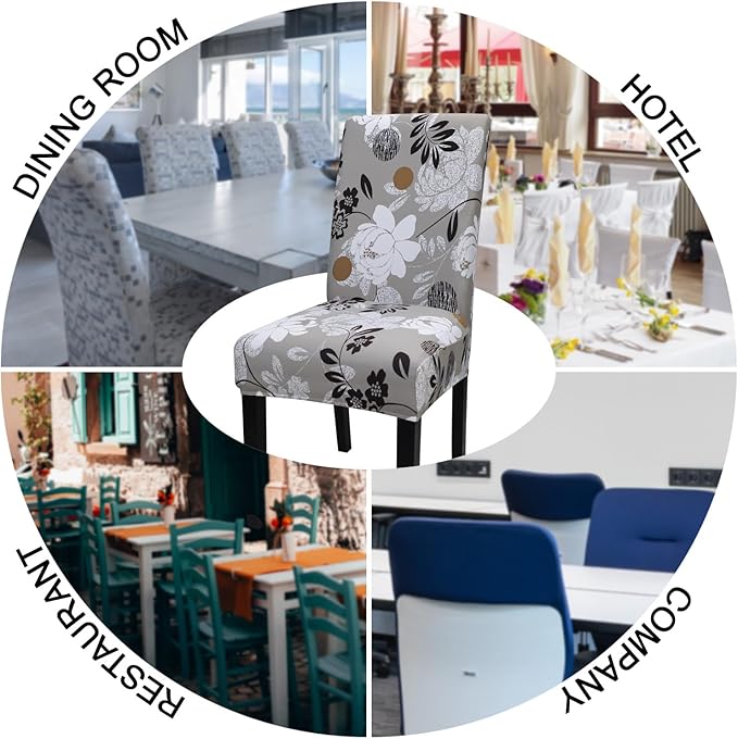 - 【High Quality of Chair Cover】- JQinHome dining room chair coversare made of durable and high persistence polyester and stretchy spandex fabric, soft, comfortable and wrinkle resistant, no ironing required; Stretchable Material,stretch that recovers quickly,secure fit with sewn-in elastic hem.