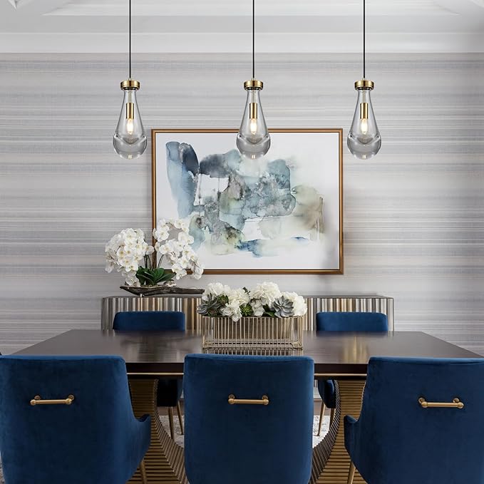 - 【Raindrop Design】This raindrop pendant light features a unique and captivating design that combines modernity with the beauty of nature. The handmade, mouth-blown glass shade resembles raindrops, creating a stunning light effect that enhances any space. Whether you prefer a modern or vintage farmhouse style, these pendant lights effortlessly blend in while illuminating your room with a bright and decorative ambiance.