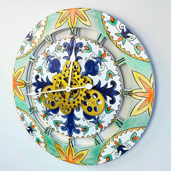 - Wall Clock Italy Collection with Real Moving Gears is an Art Timepiece inspired by the Famous Amalfi coast Tiles in Italy