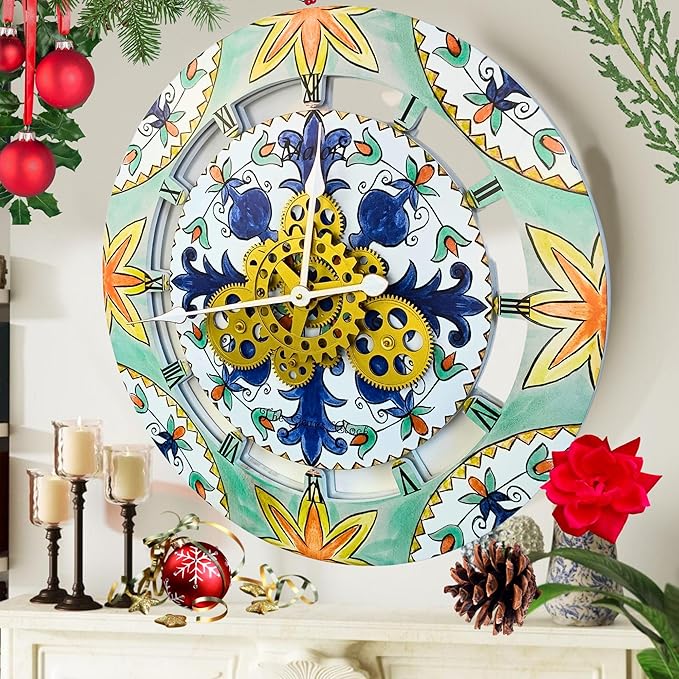 The Gears Clock Wall Clock Italy Collection with Moving Gears (Maiori, 24 inch Round)