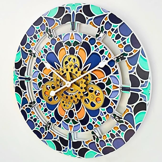 The Gears Clock Wall Clock Italy Collection with Moving Gears (Tramonti, 24 inch Round)