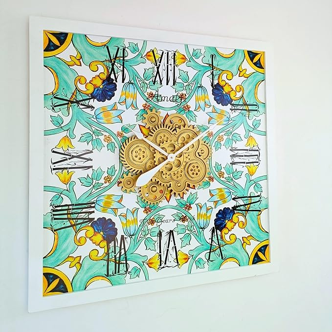 - Wall Clock Italy Collection with Real Moving Gears is an Art Timepiece inspired by the Famous Amalfi coast Tiles in Italy