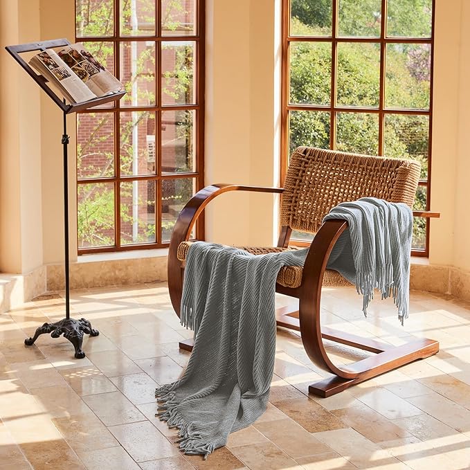 lifein Throw Blanket for Couch, Soft Boho Decor Bed Throw,Cozy Grey Knitted Chenille Small Farmhouse Lightweight Throw for Spring(Light Grey,50 * 60")