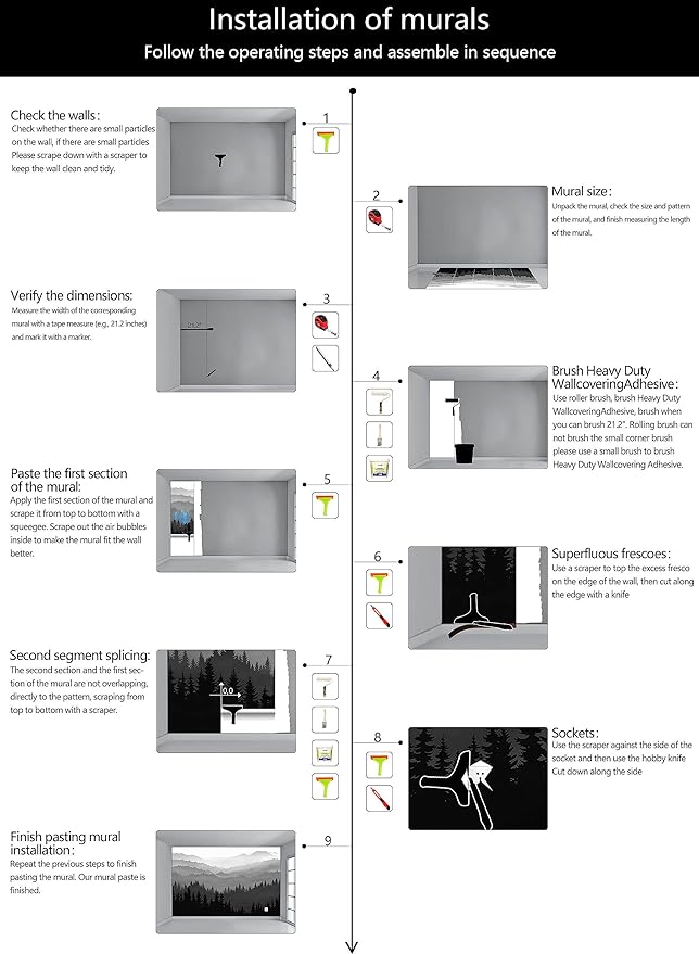 - Warm tip: This mural is not peel and stick, you need to buy your own glue, it is recommended to use Heavy Duty Wallcovering Adhesive.