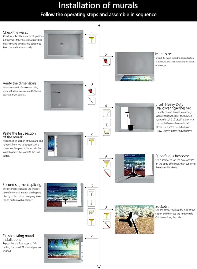 - Construction Installation: Each part of the mural is marked with a serial number underneath, no overlap, direct docking, in order. (Please refer to installation instructions)