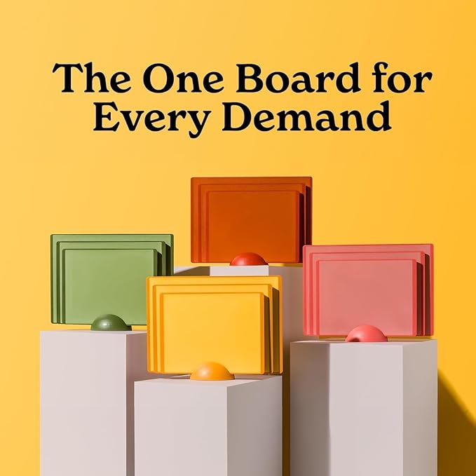 - Seamless Kitchen Decor: Mix and match our modern plastic cutting boards for kitchen with your unique aesthetic. Available in 6 vibrant shades, these cutting boards plastic with stand add personality and style to your kitchen décor effortlessly