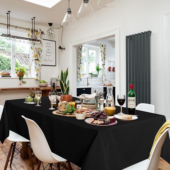 sancua 8 Pack Black Tablecloth 60 x 84 Inch, Rectangle Table Cloth for 4ft Tables - Stain and Wrinkle Resistant Washable Polyester Table Cover for Dining Wedding Banquet Party Buffet Restaurant