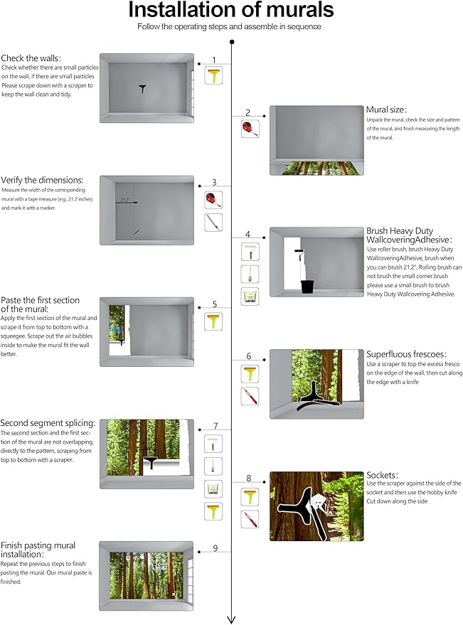 - Warm tip: This mural is not peel and stick, you need to buy your own glue, it is recommended to use Heavy Duty Wallcovering Adhesive.