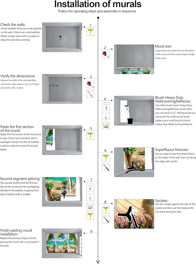 - Warm tip: This mural is not peel and stick, you need to buy your own glue, it is recommended to use Heavy Duty Wallcovering Adhesive.