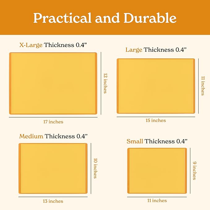- 4-Pack with Holder: This cutting board set includes small, medium, and large cutting board sizes for every prep need. It also comes with a compact holder that neatly organizes all boards vertically, keeping your countertops clutter-free while ready for any chopping task.