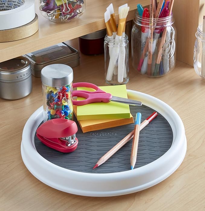 Copco Basics Non-Skid Pantry Cabinet Lazy Susan Turntable, 12-Inch, White/Gray (Pack of 2)