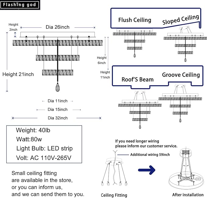- 【Installing Chandelier】Please ensure that the product size is suitable for your needs.This product is easy to install with instructions. If you have any questions, we will all help you figure it out