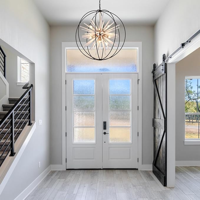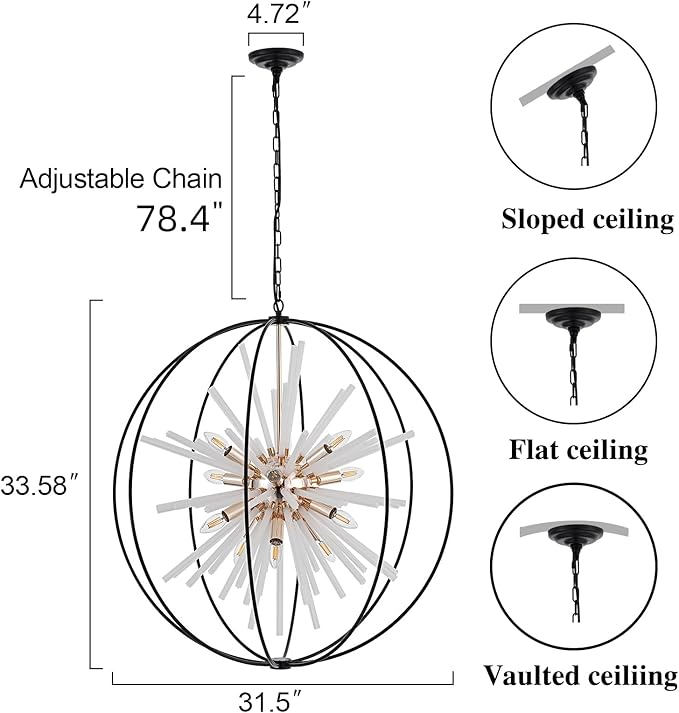 - 【Compatible with Various Bulbs】Sputnik Light Fixture features compatibility with dimmer,16 E12 bulbs base, 60W max (Switches and Bulbs NOT Included). You can also install LED, Incandescent, or CFL bulbs. The Chandeliers For Entryway emit a warm and inviting glow, creating a cozy atmosphere that elevates the mood of your space.