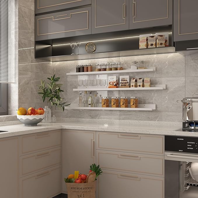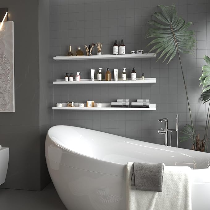 - Beautiful hanging shelves: These white wall-mounted ledge shelves are both stylish and sturdy, made of high-quality MDF board. The wood grain appearance adds a delicate touch to your room decor, making it more fashionable and modern
