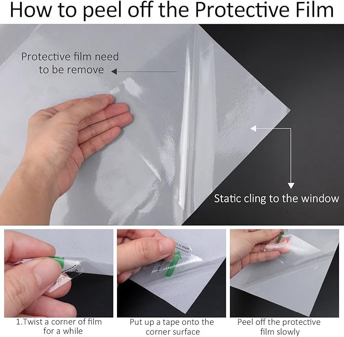 - NO GLUE & STATIC CLING: Super static cling to the window with a no-glue design, can protect your privacy well in an environmental way. Removable with no traces or residue left and can be applied several times, good to use at rented house or apartment.
