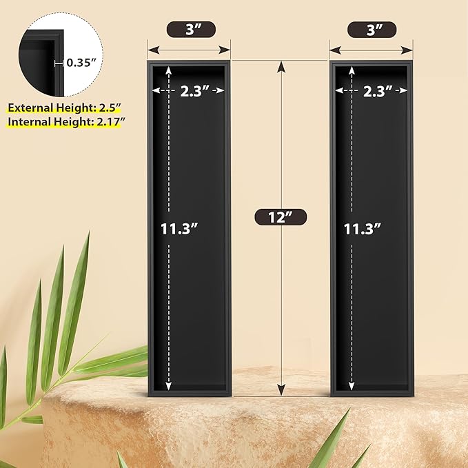 - PLEASE, REFER TO THE SIZE WE LISTED: EXTERNAL SIZE: 12" L x 3" W x 2.5" H; INTERNAL SIZE: 11.3" L x 2.3" W x 2.17" H, AND MEASURE YOUR DRAWER OR ITEMS FIRST