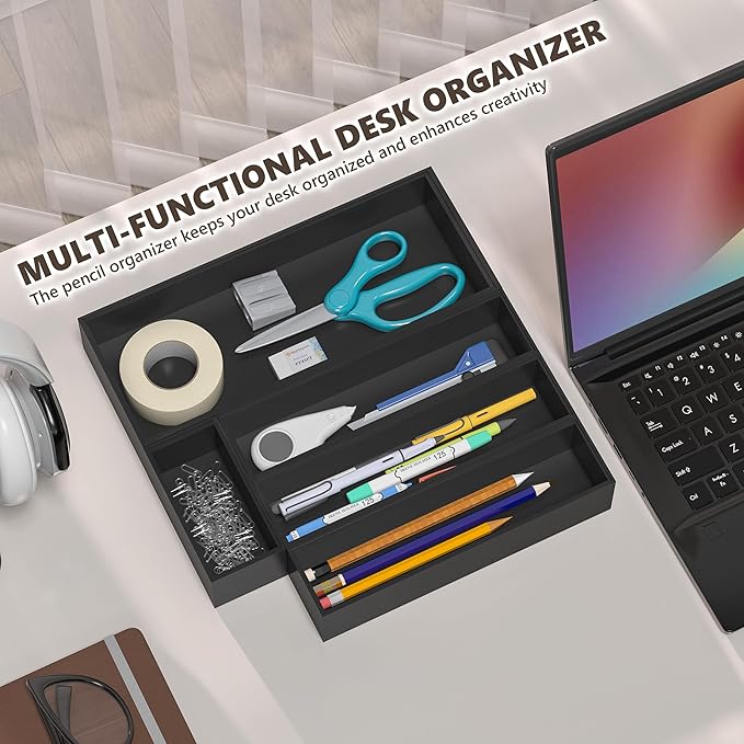 - Multi-functional Drawer Organizer Tray - Say goodbye to having multiple messy junk drawers and always having to dig deep for any needed items. Used in kitchen to organize spoons, spatulas, whisks, wine stoppers, bottle openers, bag clips, spices, baking utensils and other kitchen gadgets; used as bathroom vanity tray to keep perfume, candle, jewelry, trinket, watch, key neatly; or used as desk organizers to accommodate your desk supplies, like your pens, business cards, post-its, paper clips etc. It will make a great addition in your home or office