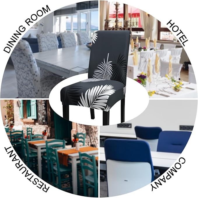 - 【High Quality of Chair Cover】- JQinHome dining room chair covers are made of durable and high persistence polyester and stretchy spandex fabric, soft, comfortable and wrinkle resistant, no ironing required; Stretchable Material,stretch that recovers quickly,secure fit with sewn-in elastic hem.