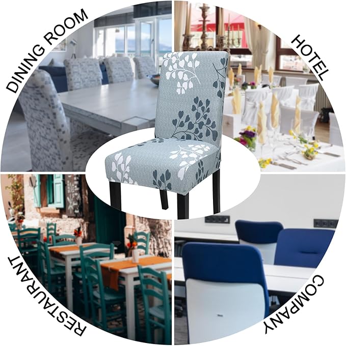 - 【High Quality of Chair Cover】- JQinHome dining room chair covers are made of durable and high persistence polyester and stretchy spandex fabric, soft, comfortable and wrinkle resistant, no ironing required; Stretchable Material,stretch that recovers quickly,secure fit with sewn-in elastic hem.