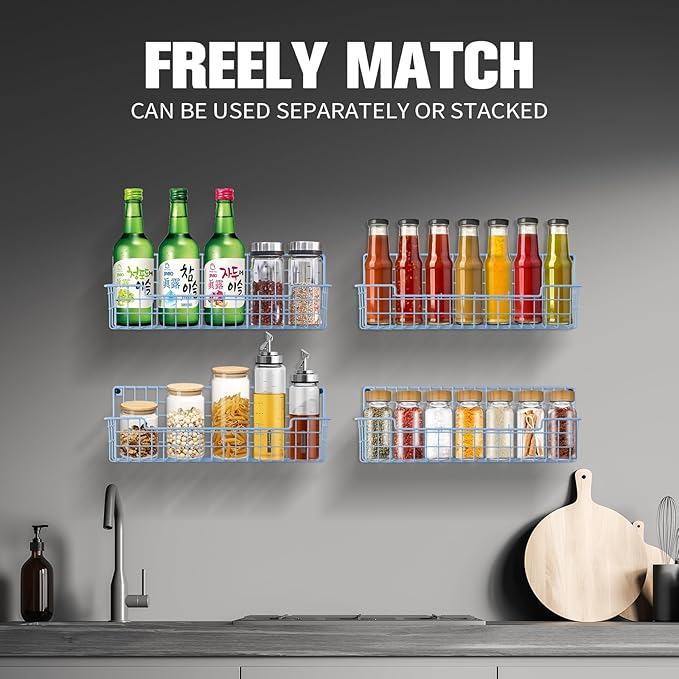 - Simple and Practical Design: Spice rack’s simple and applicable design style can perfectly match any scene, an elegant light blue wall spice rack will make you never tire of seeing it, bringing convenience and adding beauty to your home life.