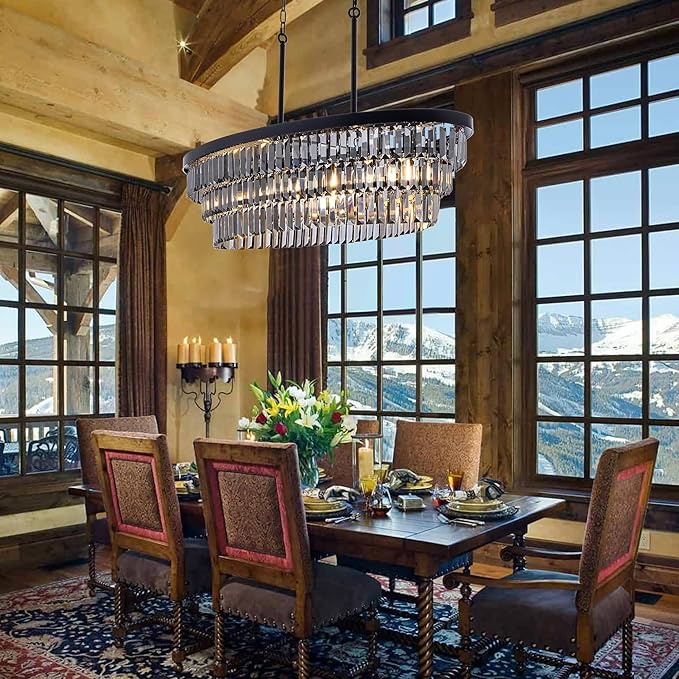 - Crystal Chandelier: Delicate crystal prisms sparkle from every angle, which is gorgeous and impressive, fit with the style of classic, modern, luxury, transitional, industrial, farmhouse, rustic. Ideal for dining room, entryway, living room, kitchen island, bedroom, foyer, restaurant or any other interior space