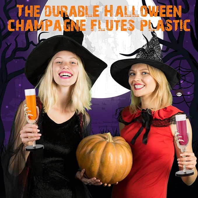 - Suitable Size and Capacity: the Halloween champagne flutes plastic size are about 3.35 x 3.15 x 7.09 inches/ 8.5 x 8 x 18 cm, and about 2.7 oz in capacity, which can meet your daily life needs, kids and adults will love them; Suitable for classroom parties too; Please check information before purchasing them
