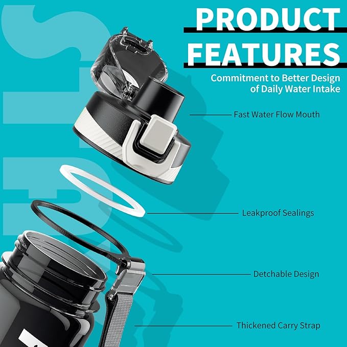 - Easily Open & Leakproof: Our leak proof water bottles flip cap is designed with a safety lock to completely avoid leaks. Our water bottle gives you more freedom and comfort. The wide mouth is easy to clean and add fruit or ice cubes! The drinking spout helps you drink easily and quickly without straw