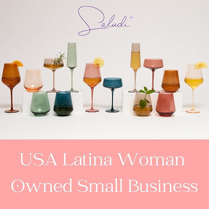 Saludi Colored Wine Glasses, 16.5oz (Set of 6) Stemmed Frida-Color Glass - Great for all Wine Types and Occasions - Luxury, Durable, Hand-Blown