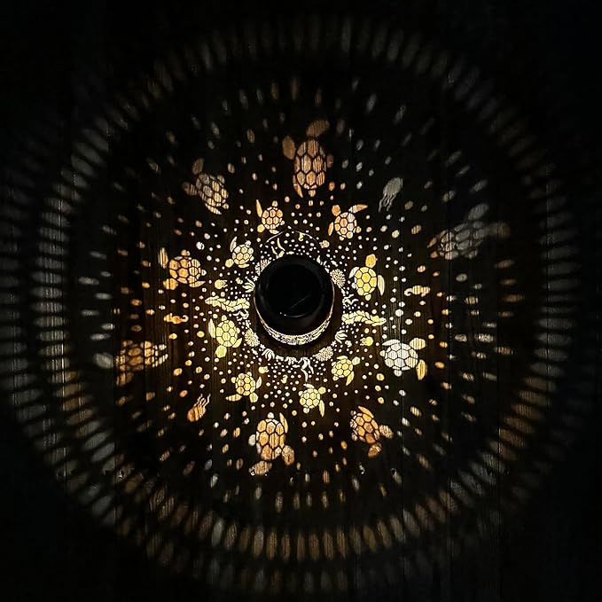 - 【Perfect Garden Decorations】Sea Turtle solar lantern can project unique and beautiful patterns in a dim environment,creating a gorgeous and warm atmosphere to bring life and fun to your garden and attract your family or friends.The unique hollow out design and beautiful antique bronze color give it an artistic touch,perfect for decorating gardens,backyards,corners,Outside,sidewalks and many other scenes