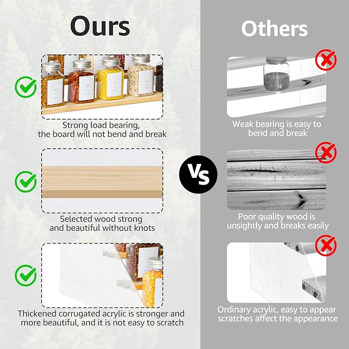 - Elegant & Sturdy: Risers display stands constructed from high-quality pine wood and corrugated acrylic, making it both aesthetically pleasing and fashionable, as well as durable and resistant to deformation, the spice shelf is a beautiful and robust addition to any space