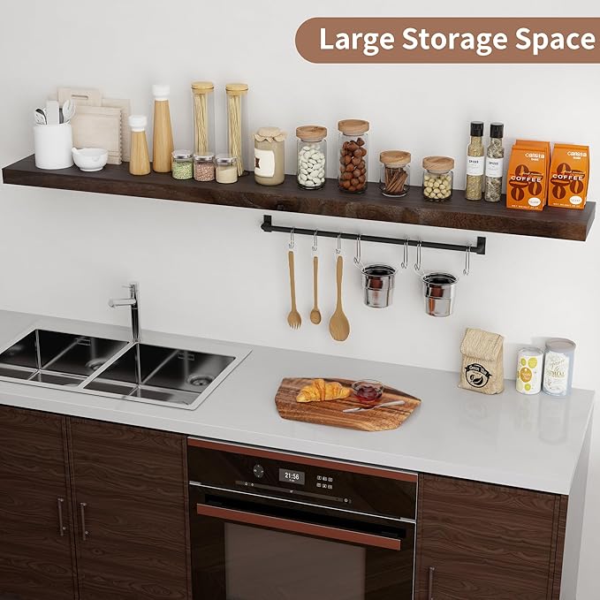 - 8" DEEP-MORE SPACE MORE TIDINESS: Axeman 72 inch floating shelves are designed to be deeper and thicker than traditional floating shelves, with a thickness of 1.37 inches and a depth of 8 inches. You can display a variety of items, such as photos, books, and knickknacks on these sturdy and spacious natural wood floating shelves