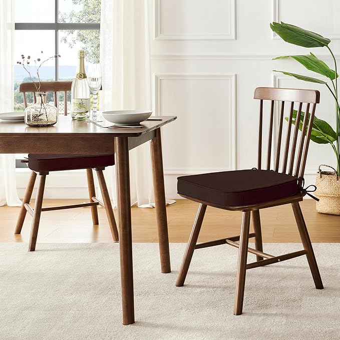 downluxe Chair Cushions for Dining Chairs, Waterproof Kitchen Chair Pads, Non-Slip Dining Seat Cushion with Ties, 17" x 16" x 2.5", Brown, 6 Pack