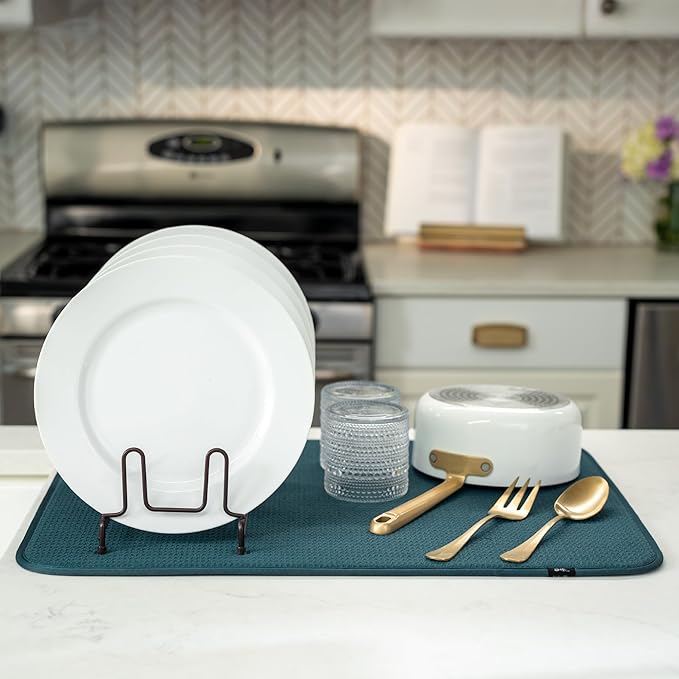 - Dish drying mats for kitchen counter are reusable, machine washable, and easy to store for kitchen organization; durable construction will not chip or break like a stone dish drying mat for kitchen