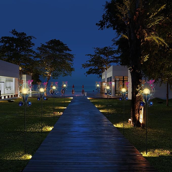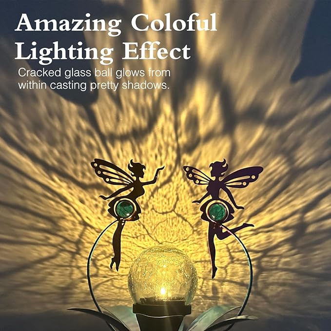 - Fairy Shape Design - Made of durable and anti-rust painted metal, with a waterproof solar panel and cracked glass lamp. Its weather resistance makes it suitable for outdoors.