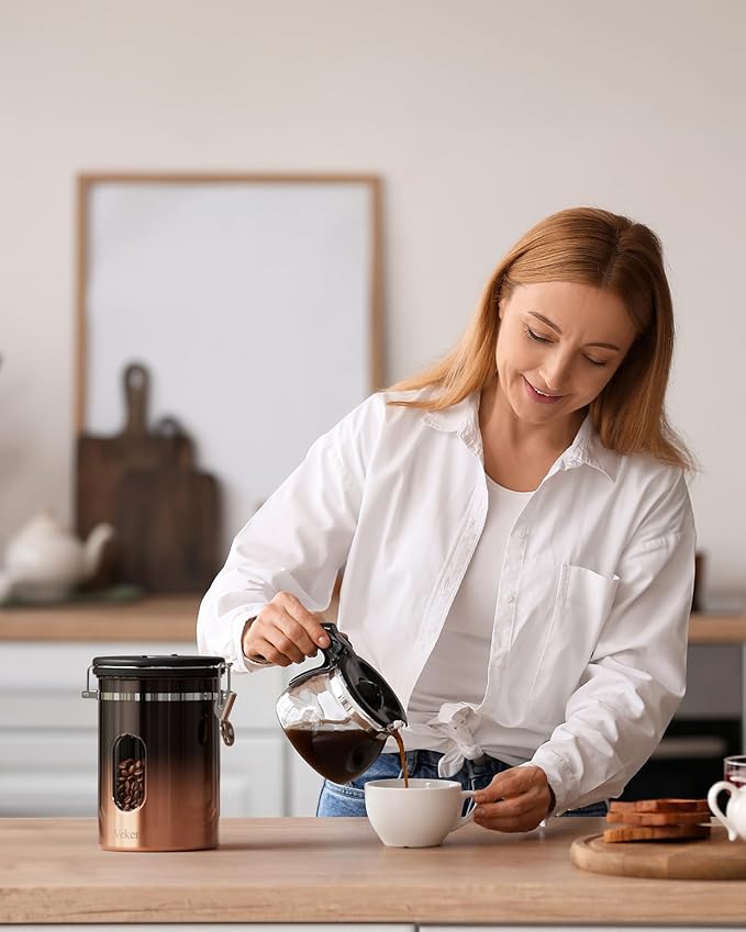 - Gifts for Coffee Lover: This copper-colored jar is a stylish and functional gift for coffee lovers, friends, and family. It keeps coffee fresh and countertops tidy, making it a perfect choice for Mother’s or Father’s Day. Ideal for kitchen organization