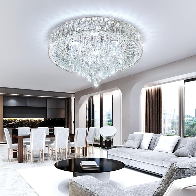 - 【Wide Applications】Crystal ceiling light suits for any room like a living room, dining room, hallway, study room, entrance, foyer, showroom, kitchen island, hotel, etc