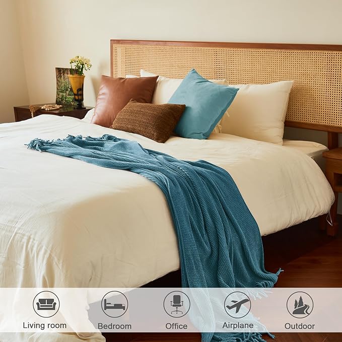 lifein Throw Blanket for Couch, Soft Boho Decor Bed Throw,Cozy Blue Chenille Knitted Small Farmhouse Lightweight Throw for Spring(Sky Blue,60 * 80")