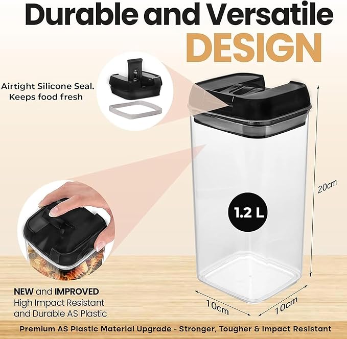 - 【 HIGH-QUALITY BPA-FREE PLASTIC WITH PREMIUM AS MATERIAL UPGRADE 】Made from premium, BPA-free plastic, these food storage containers and pantry storage containers offer a durable, reliable solution for any kitchen. Now further enhanced with advanced AS plastic instead of standard PS, they provide superior durability, toughness, and impact resistance. This upgrade ensures your containers withstand drops, resist cracks, and keep your food safely stored with confidence—delivering long-lasting quality without changing container size or capacity.