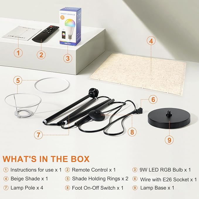 - 【Easy installation 】The tall floor lamp is easy to install—no extra tools are needed. Just follow the instructions to screw in all the parts, and you'll be ready to enjoy customizable lighting! Ideal for gifts
