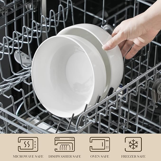- 【Easy to Clean & Store】Crafted from high-temperature-fired porcelain, these cereal bowls feature smooth surfaces that prevent food residue and resist scratches, making cleaning hassle-free. Their classic round shape adds a decorative element to any space and allows for convenient storage, saving valuable kitchen space