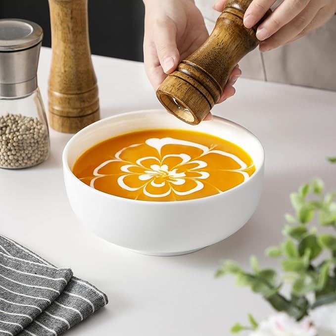 - 【Versatile Bowl Set】This set features two 44-ounce bowls, each measuring 7 inches wide and 3 inches high, ideal for serving a variety of dishes.From hearty soups to comforting oatmeal and refreshing salads, these bowls serve multiple purposes and can even be used as stylish vessels for vibrant fruits or ramen
