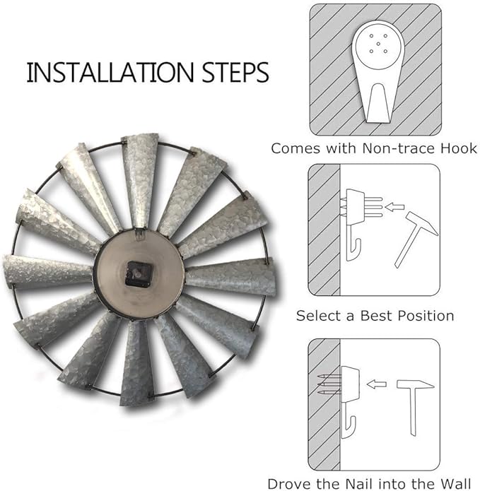 - COUNTRY WINDMILL STYLE -Inspired by rustic windmills on a farm, this gorgeous,analog clock features a distressed finish, blending seamlessly with any home decors.