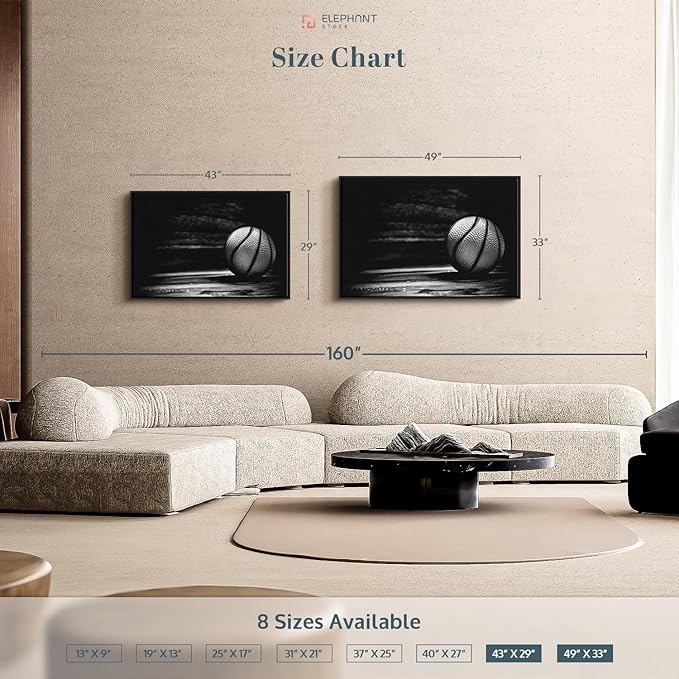 ElephantStock Basketball Wall Art - Horizontal Framed Canvas - 1-Piece Hallway Wall Decor - Photography sports Canvas Print - Black and Gray Decor for Wall - 43" X 29"